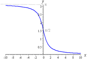 Reflection in the line y = x gives us the inverse function, and we have obtained the graph of y = arccot x as: